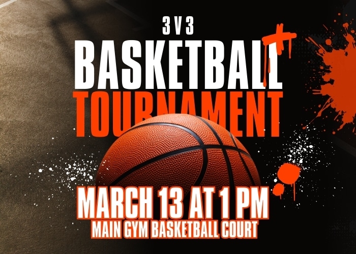 Compete in the Fitness Center's 3v3 Basketball Tournament! Teams of 4 Double Elimination Prizes for the top 3 teams Sign up here: https://www.signupgenius.com/go/70A0848A5A928A3FA7-62474780-3v3basketball Located at the main gym basketball court. For any questions, please call 208.828.2381. |